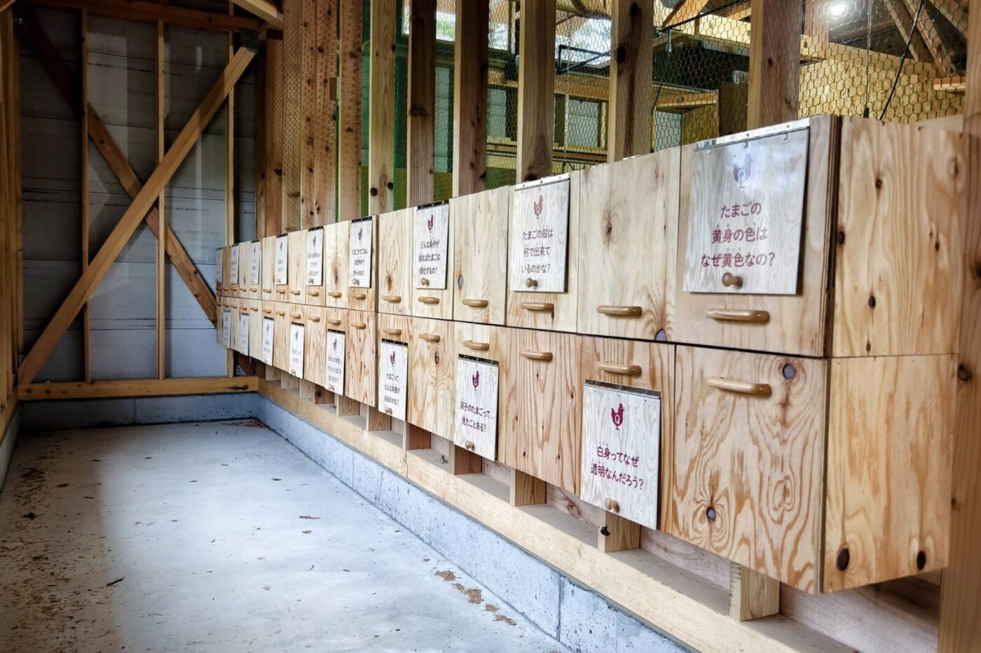 「学校」という名前のとおり、ただ体験するだけではなくたまごや鶏についてQ&A形式で楽しく学べる場所になっています。
