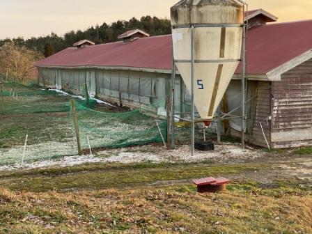 又、対策として鶏舎周りに防鳥ネットを設置し、野鳥の侵入