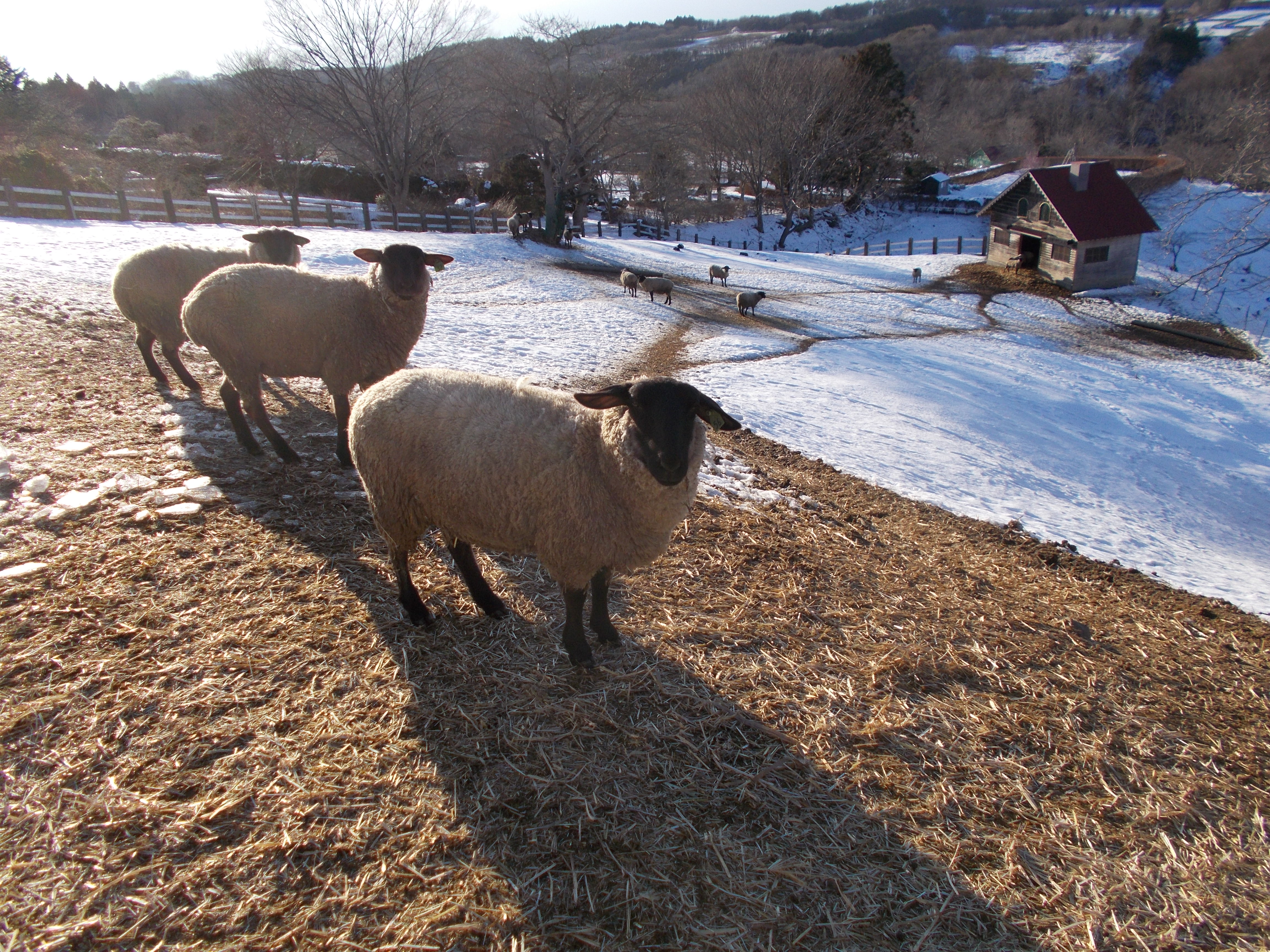 放牧地内にも雪があり動物たちにとっても冬は大好きな青草が無く厳しい環境ですが、こういう状況にもかかわらず元気にしていて、餌の時間になると喜んで走ってきます。