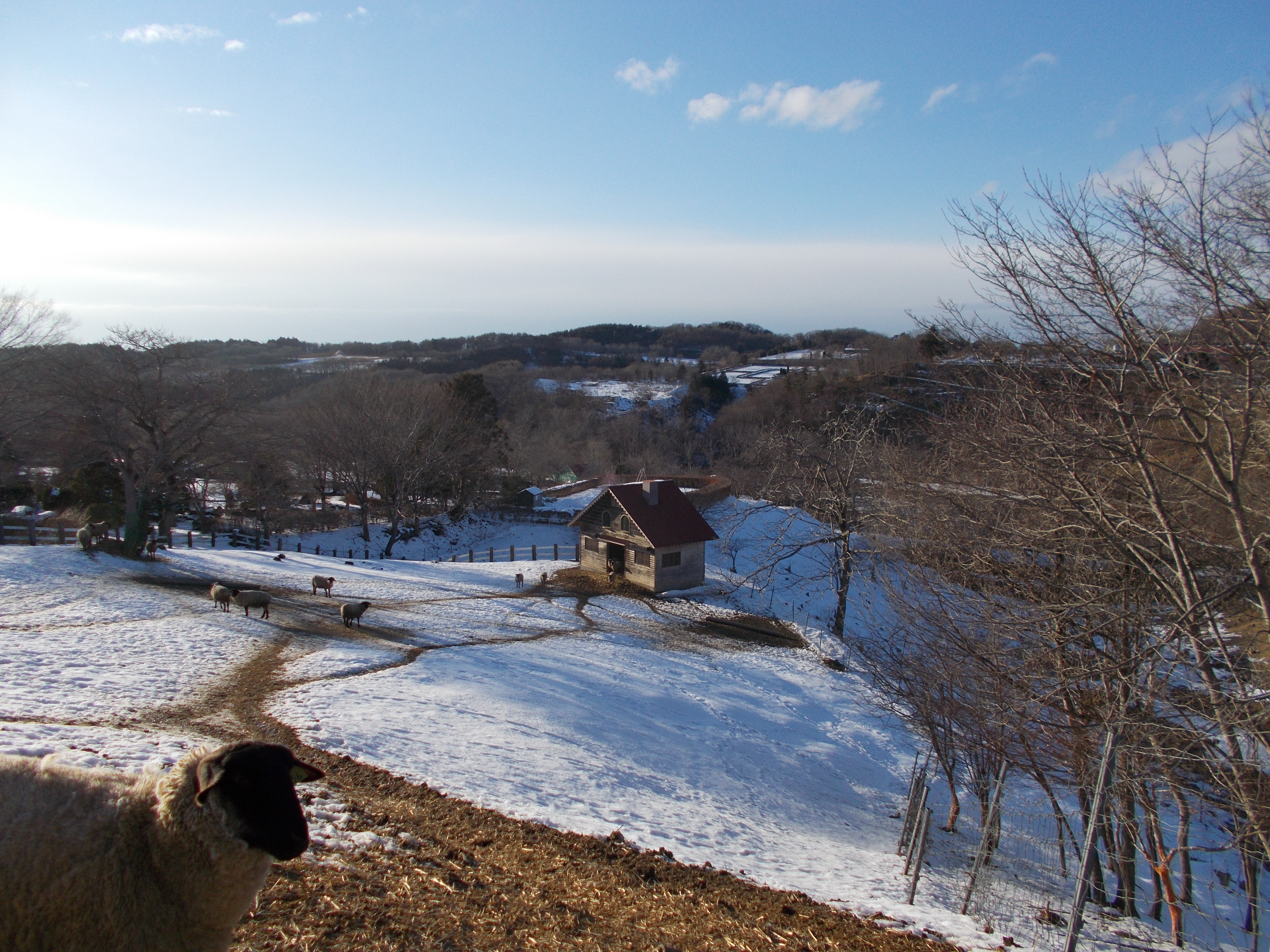 12月から1月に降った雪の影響で、牧場内にも雪があちこち残っています。