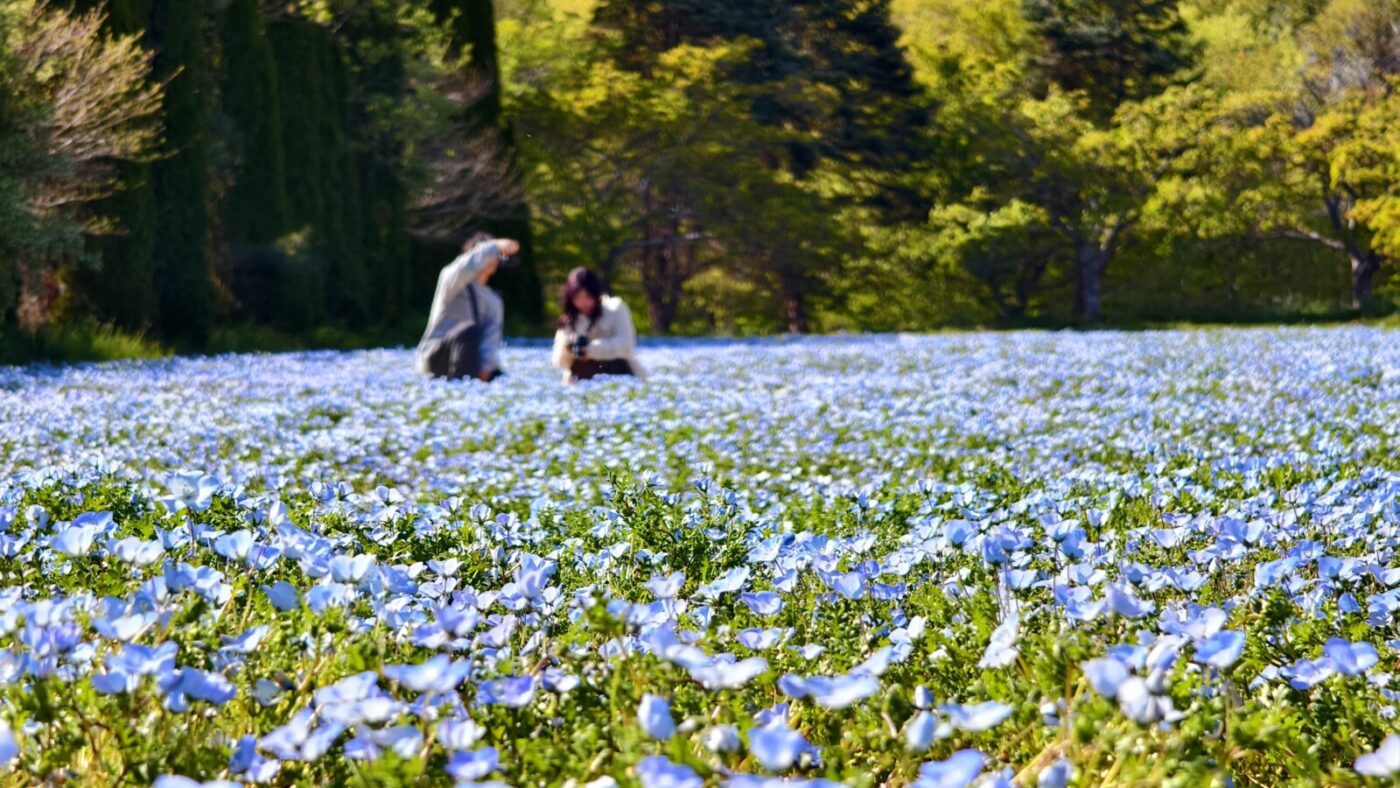 なかでもお勧めは虹の丘ガーデンのネモフィラ青くてきれいな花が咲いています。ここでの景色、撮影は是非お勧めです。
