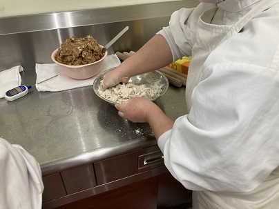 冬期は毎週3回4名のスタッフで豚まんの製造を行います。