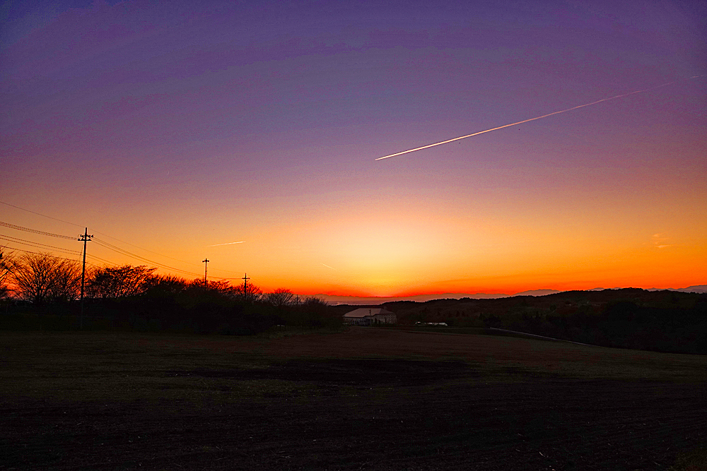 雲ひとつ無く澄み渡った空が茜色に染まり今年最高の夕景でした。