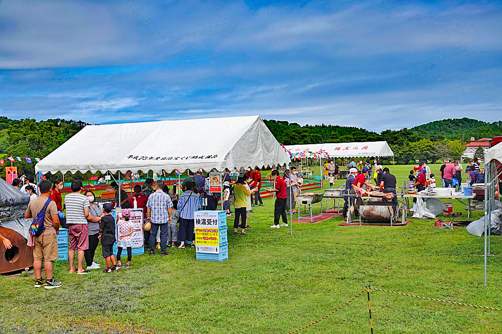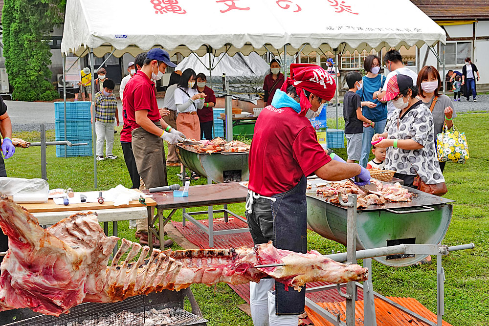 お振舞の”館ヶ森高原豚の枝肉丸焼き”400食は、午前中の段階で整理