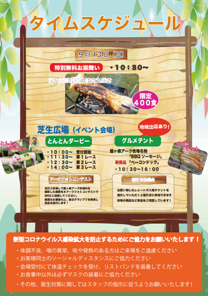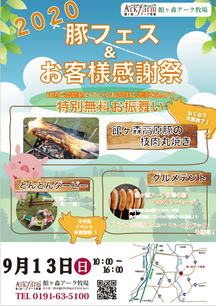そんな中、明日9/13(日)はアーク牧場で今季初めてのイベント「豚フェス&お客様感謝祭」を開催致します…!ちなみにこの日は雨の予報。残念…。
