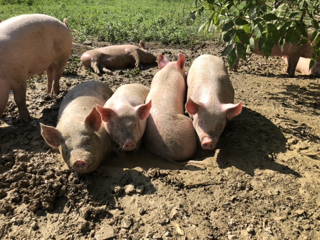雨が降ると仕事は進めにくいですが、豚さんたちにとってはこの時期は恵の雨になります。
