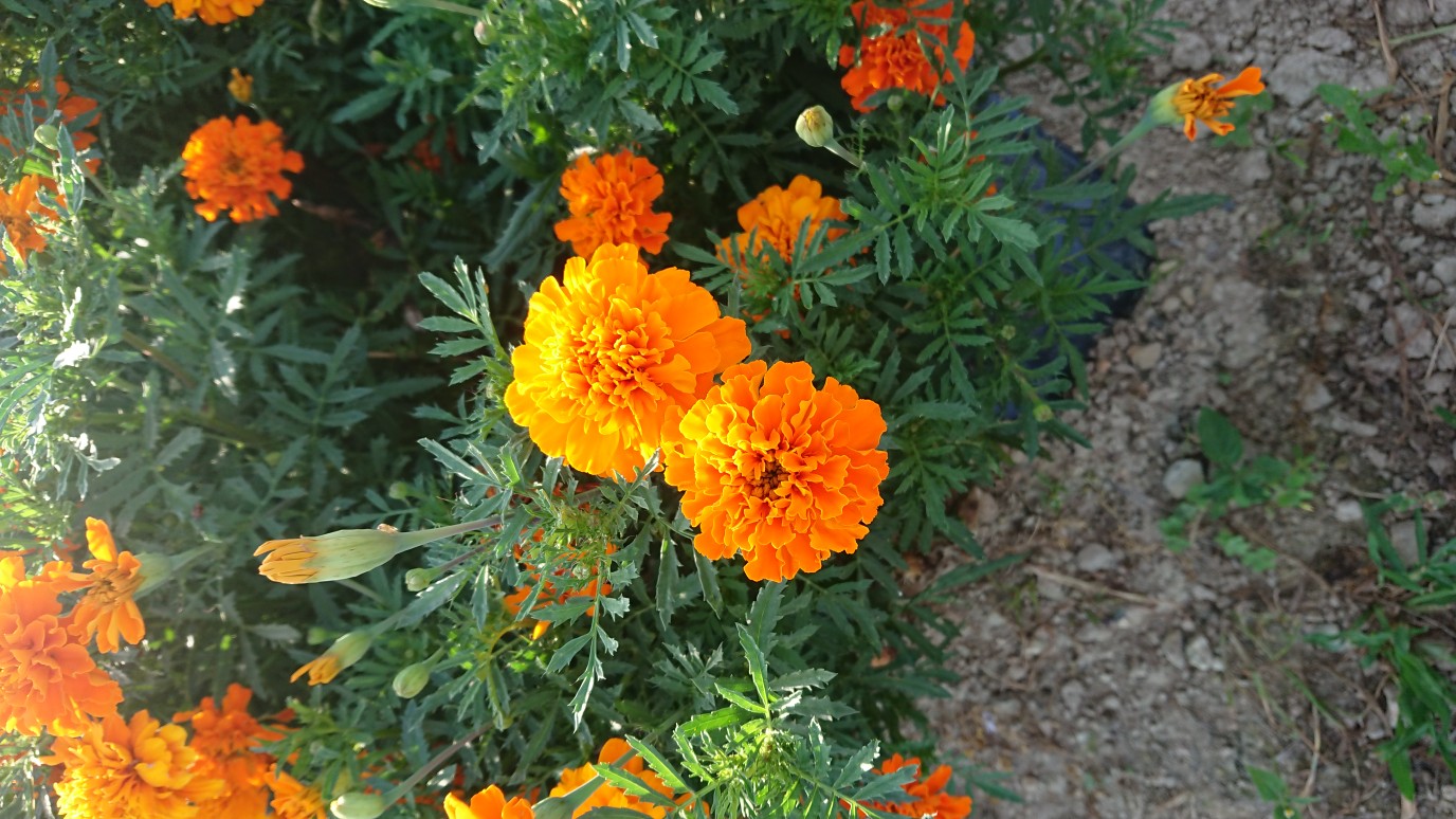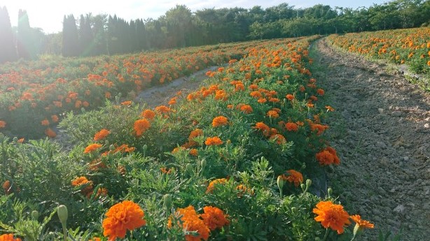 虹の丘ガーデンのマリーゴールドも鮮やかにオレンジ色の花を咲かせ・・・
