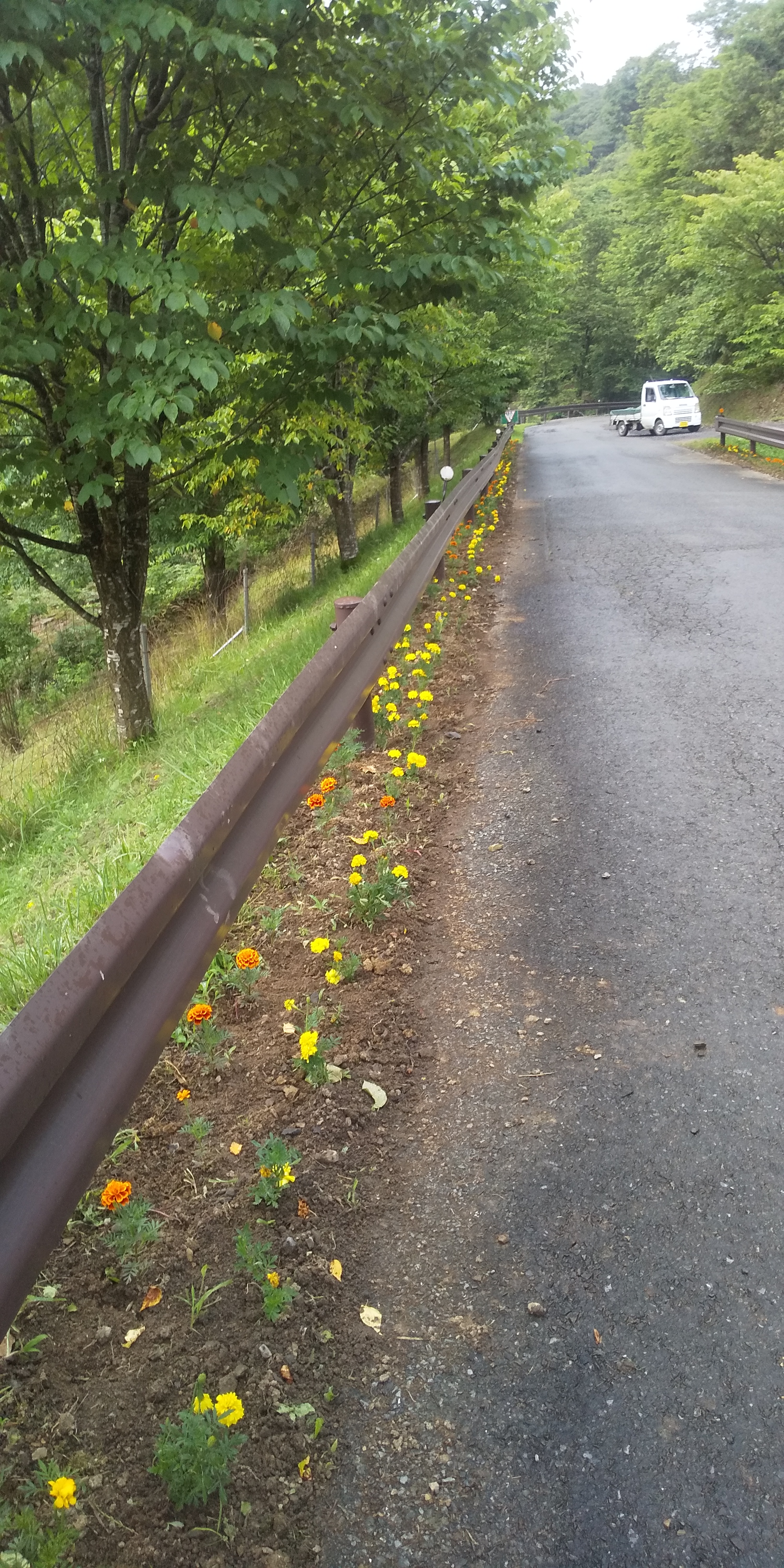 牧場で植えたばかりのお花たちはこれからきれいに咲こうと頑張っています。