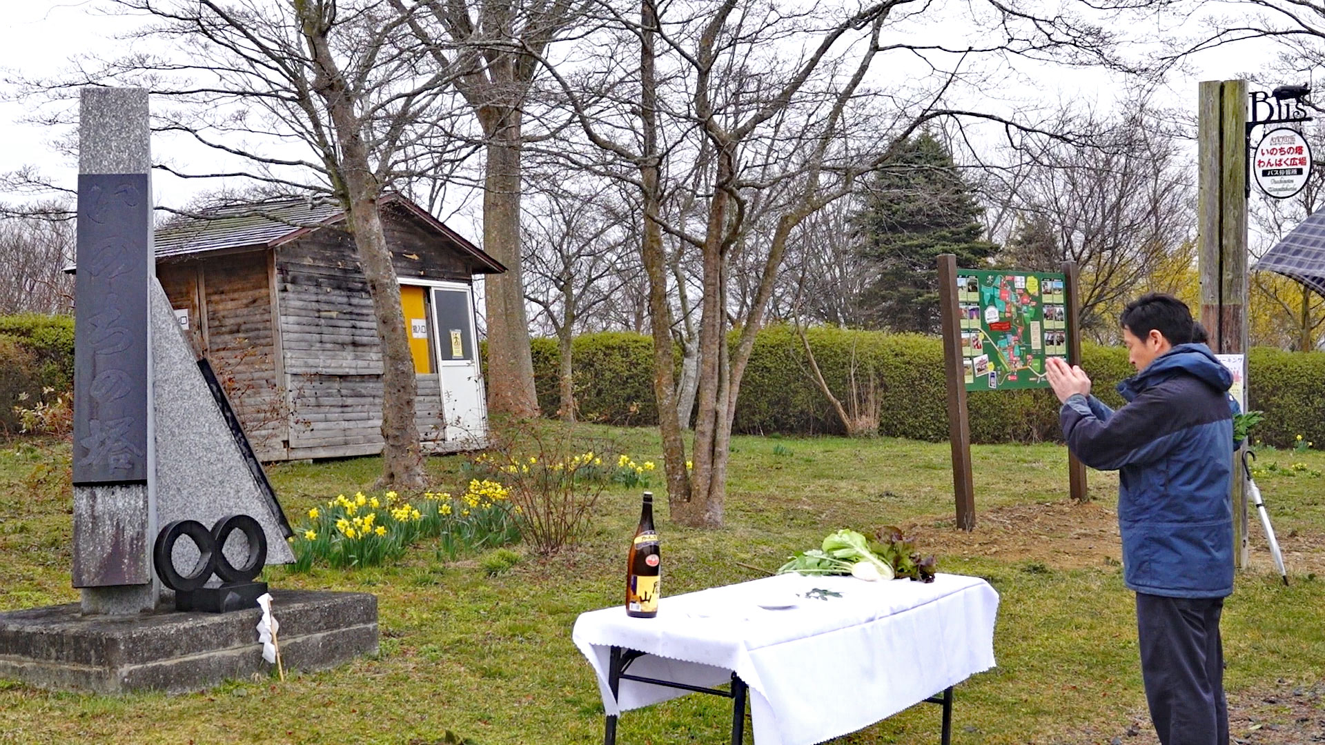 館ヶ森アーク牧場の「いのちの塔」の前で牧場事業部一同が参列し”精霊祭”が執り行われました。