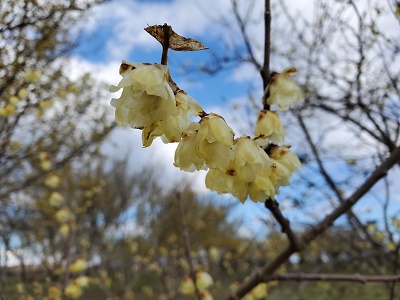 この広場内には、蝋でできたかのような黄色い花を咲かせる蝋梅(ロウバイ)も