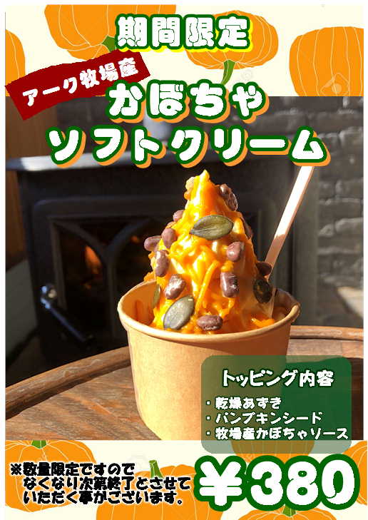 バニラソフトクリームに館ヶ森アーク牧場産のカボチャを使用したソースをかけ、