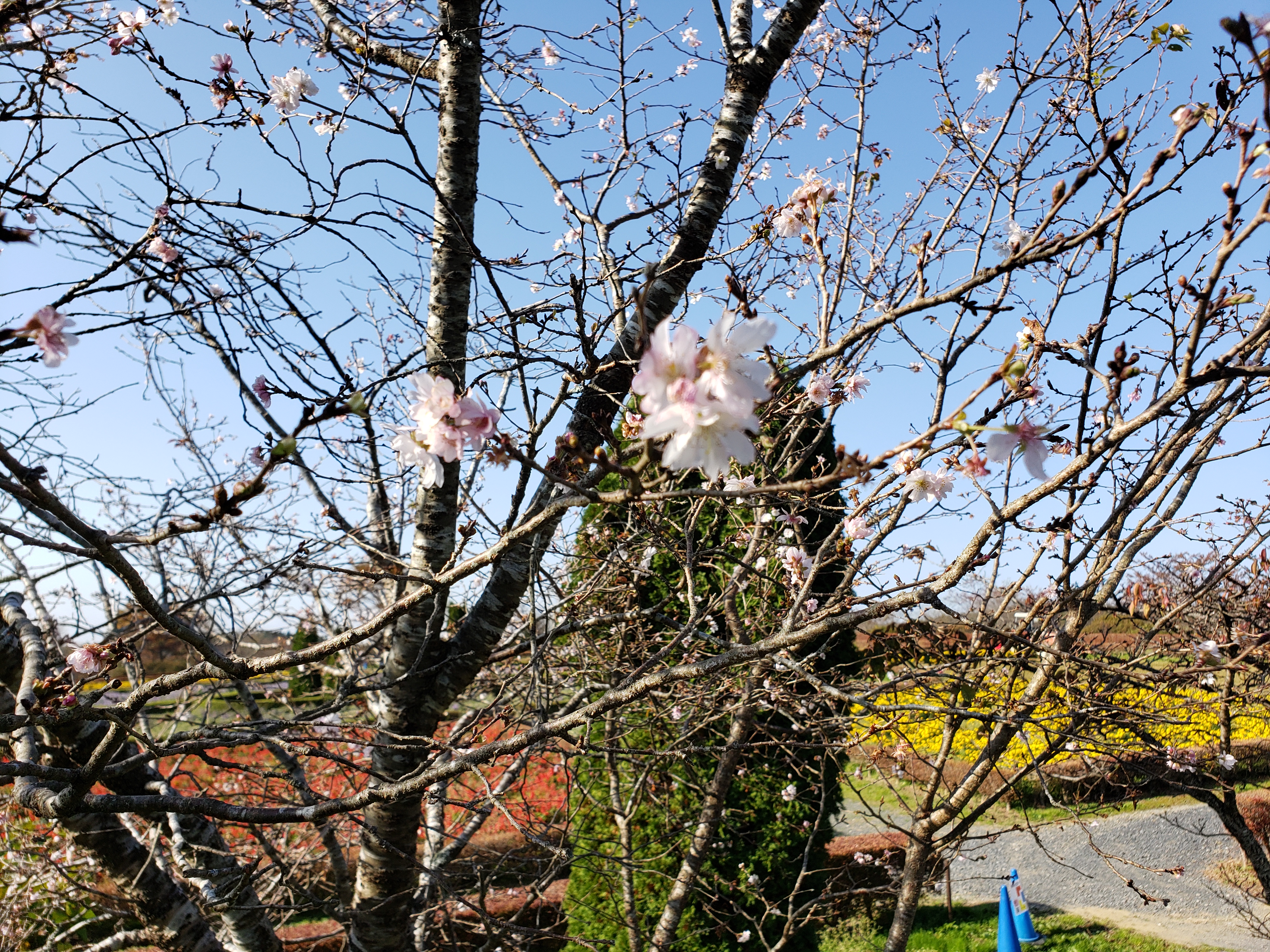 凄いですね! 1年に2回も桜の花が見られるんですよ。 牧場内には何カ所もたくさん植えられています。