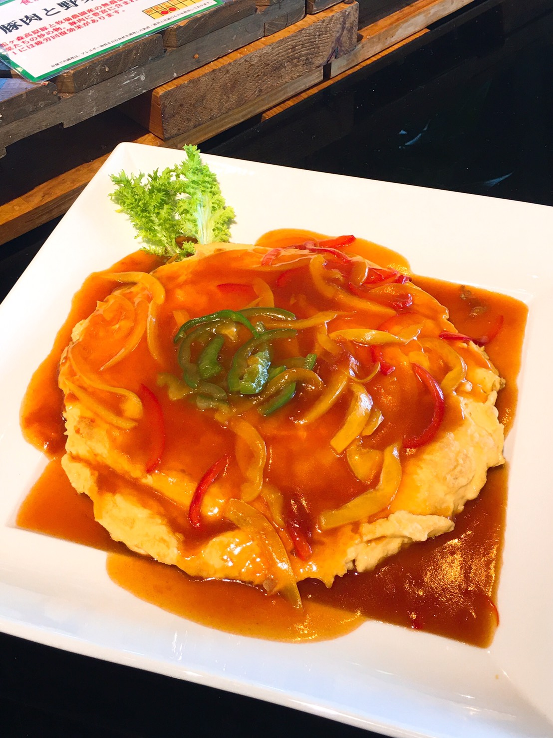 人気の一品です。中華あんの中には牧場産のパプリカ、ピーマンが入っていて見た目が華やか!