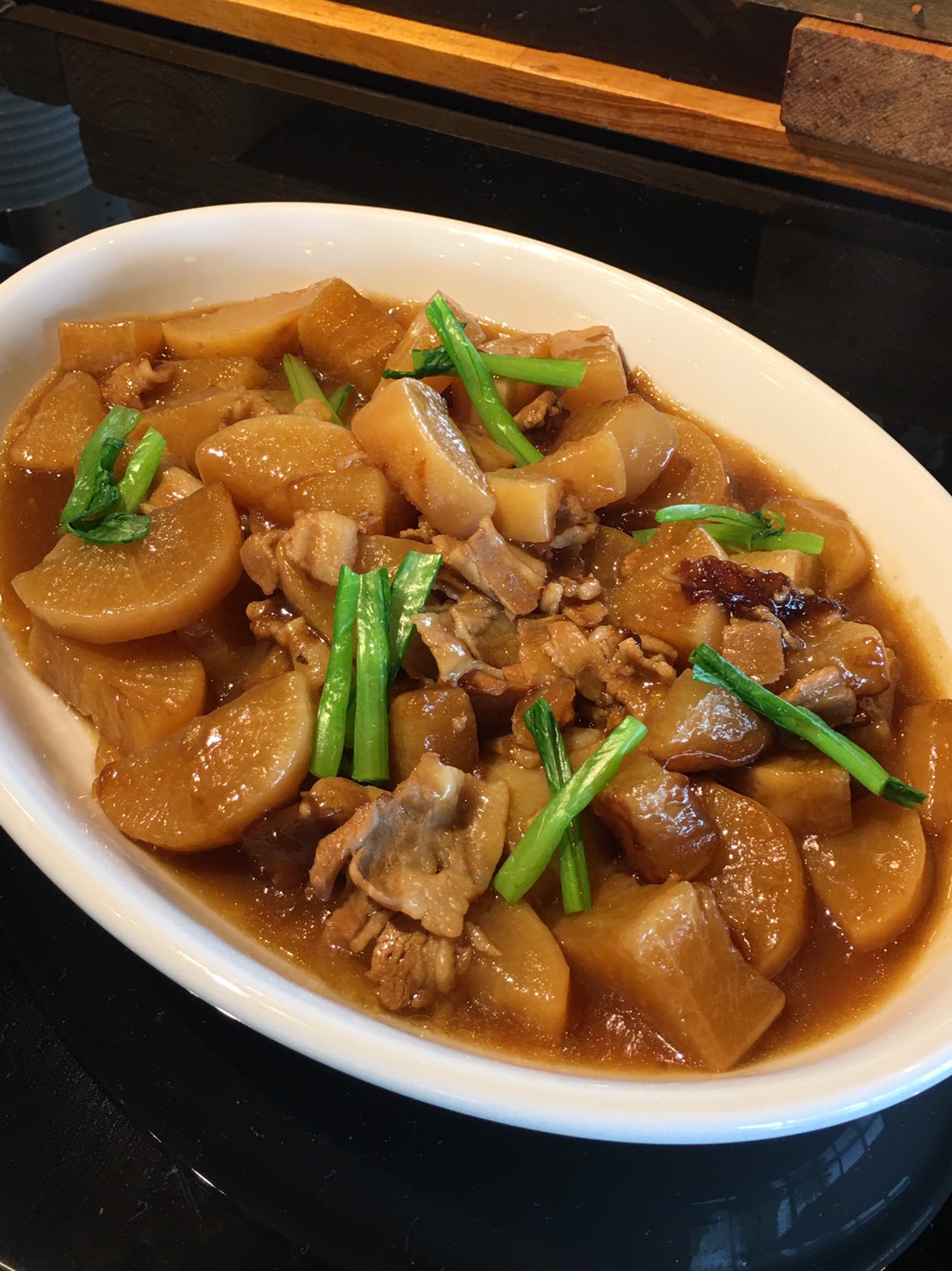 館が森高原豚のバラ肉スライスと厚切り大根を中華味噌の甜麺醤ベース、