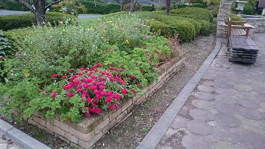 接客する立ち位置から見える花壇、そこからこぼれ落ちる花の種から想像したそうです。
