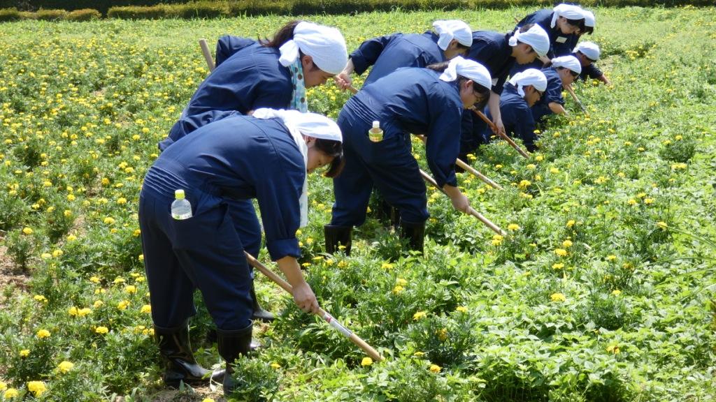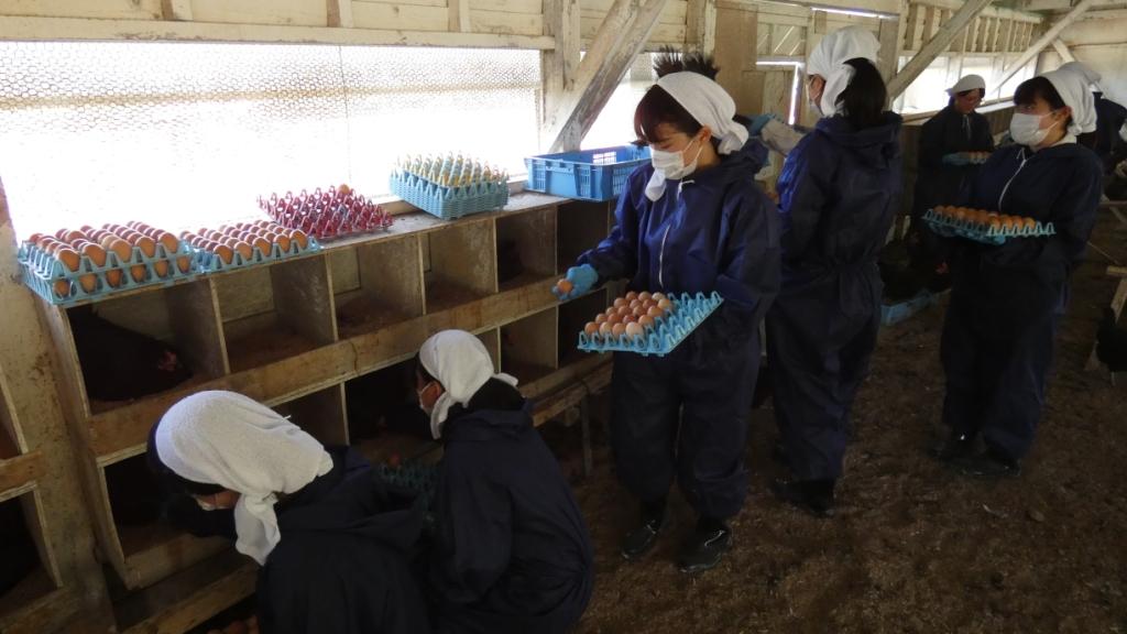 農牧では鶏の採卵や花畑の除草作業が行われました。
