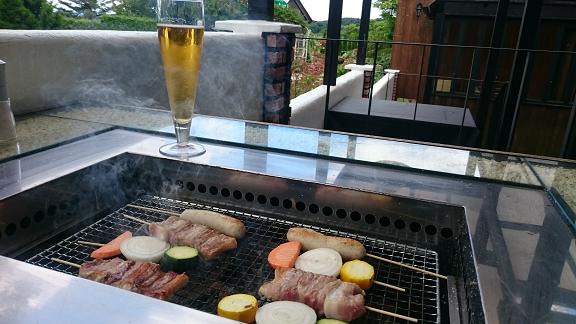 炭火焼きで焼いたお肉と野菜、ソーセージをご堪能ください。