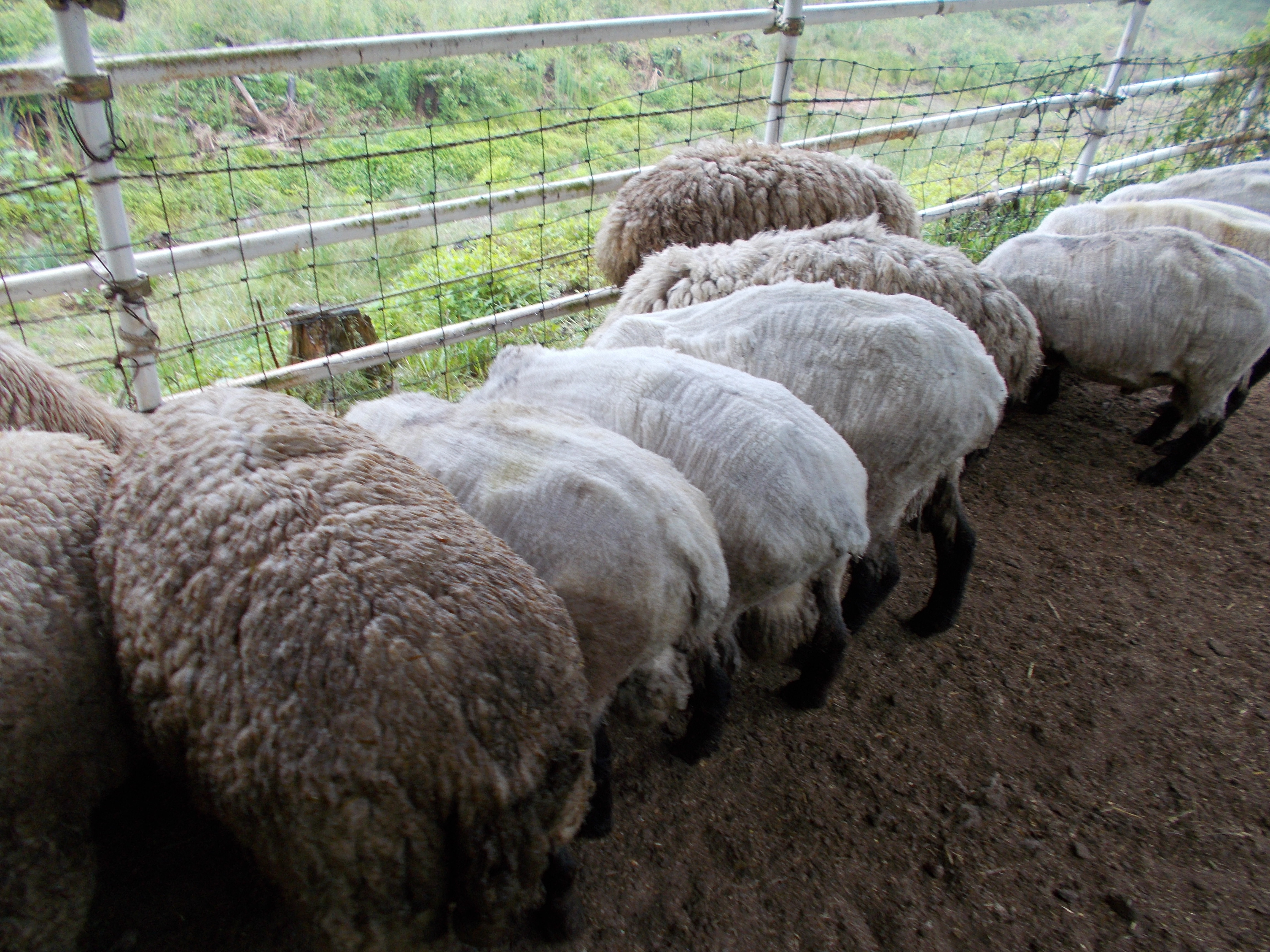 今牧場でヒツジの毛刈りを進めています。現在概ね60頭くらいのヒツジを毛刈りしましたが、まだ残り20頭くらい毛を刈っていないヒツジがいます。小屋によっては写真のように毛を刈っているヒツジと刈っていないヒツジが混在している状態がしばらくの間見受けられます。
