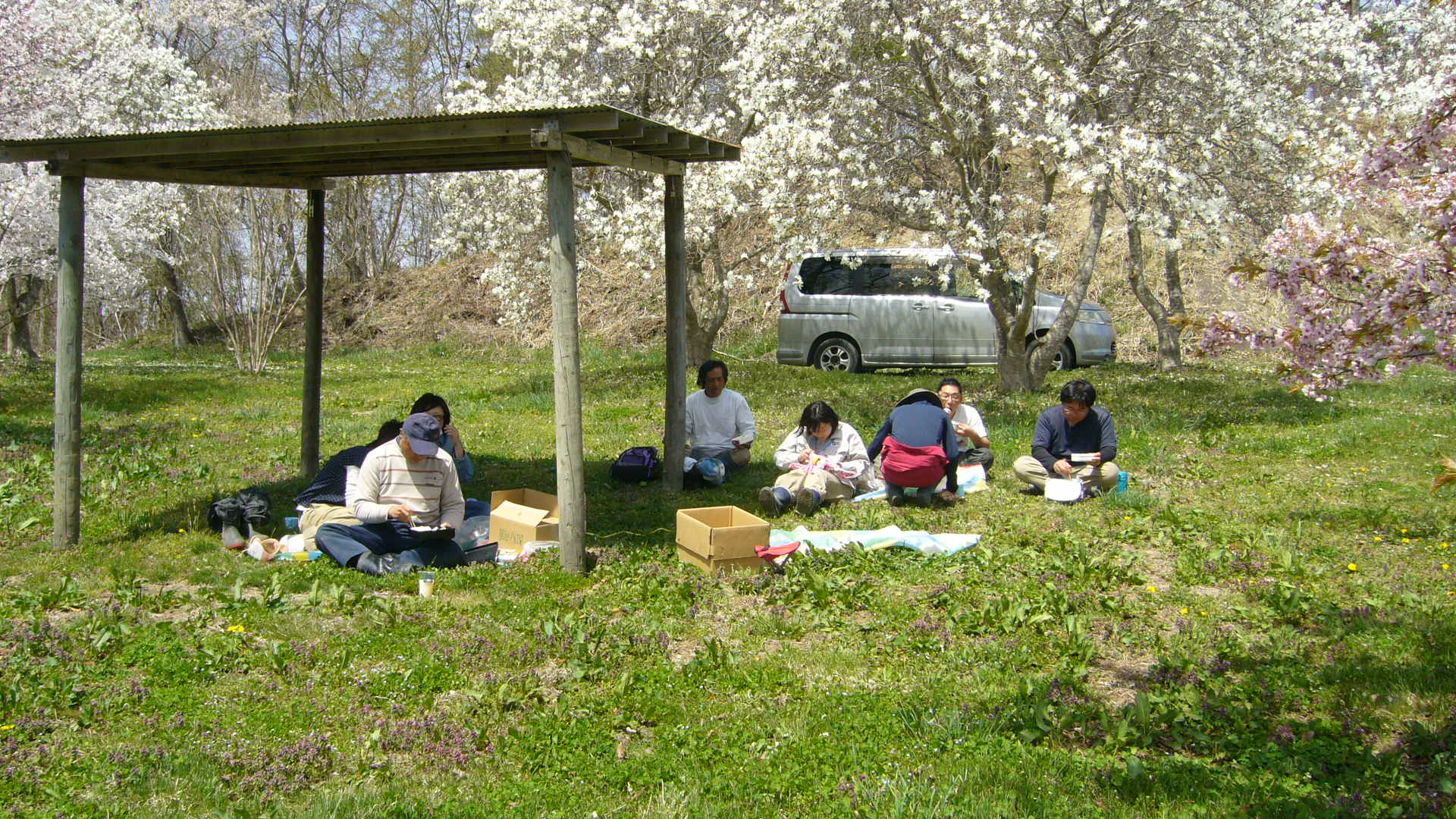 無性にお花見をしたくなり、仲間と昼食を食べながらのプチ花見をしました。