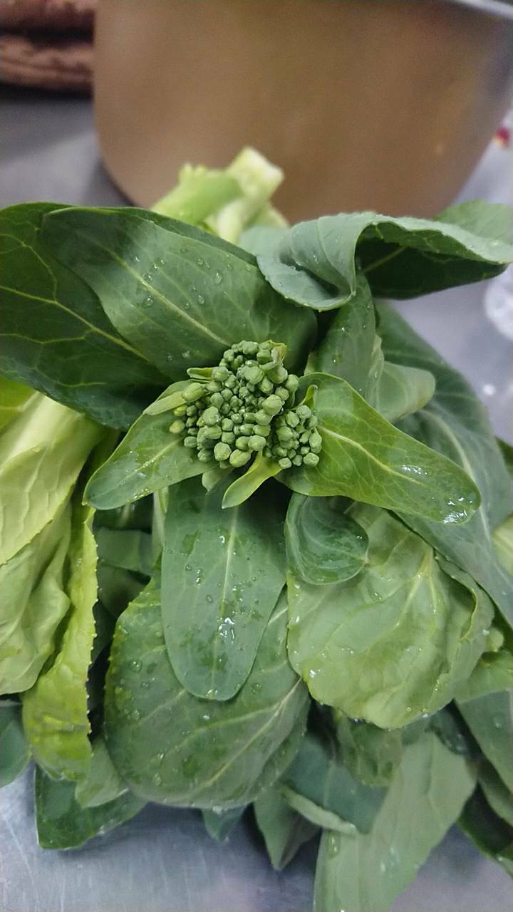 上部のつぼみ部分を収穫した小松菜です。