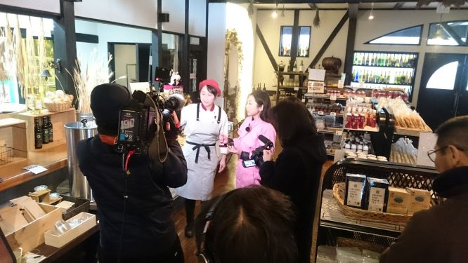 4、テレビの収録取材があり、昨年入社の伊藤沙耶加が堂々と対応しました。