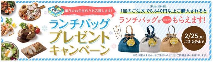 1回のご注文で8,640円以上ご購入の方全員にランチバックをプレゼント!