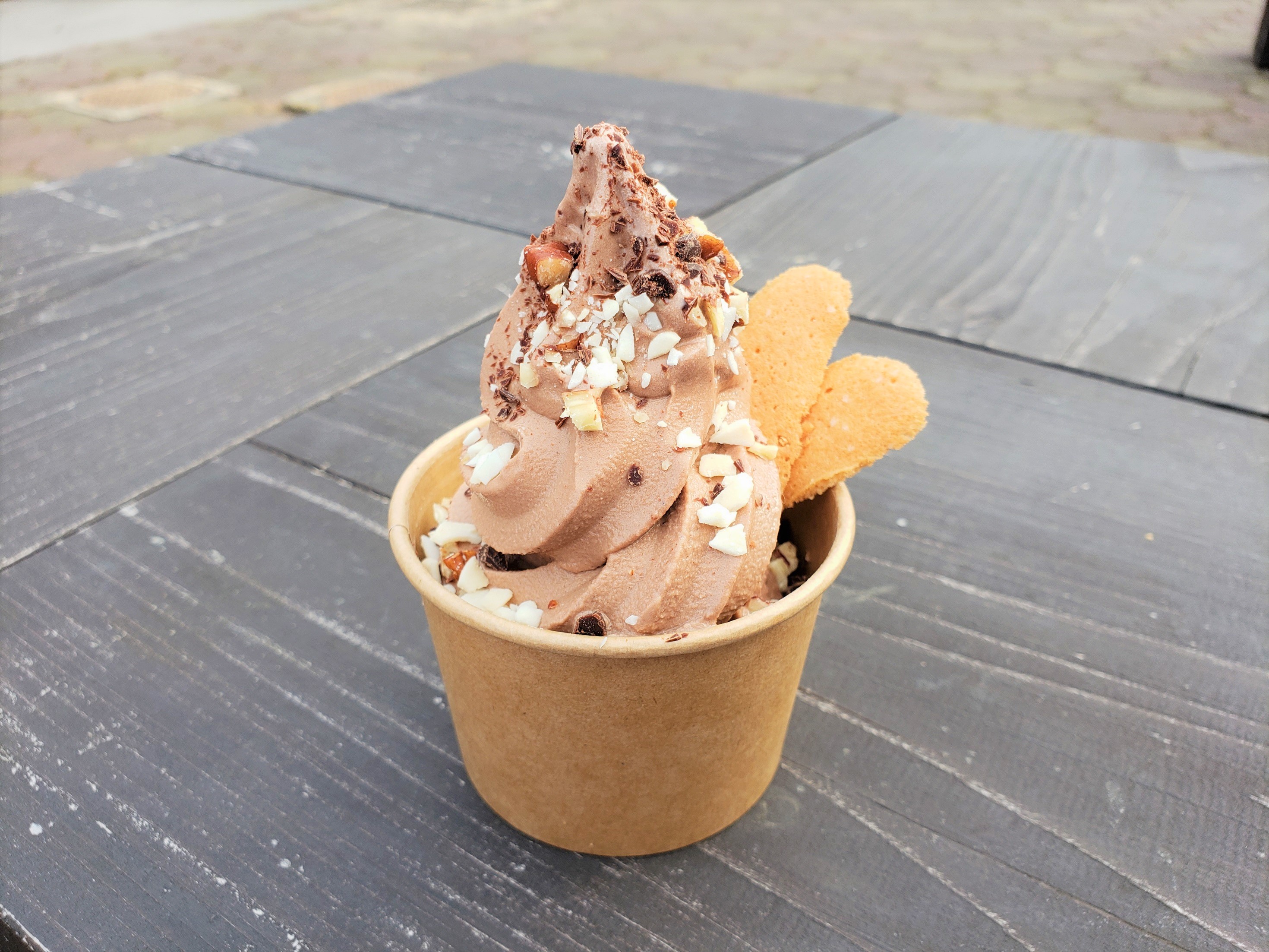 ナッツの程よい食感とラングドシャは、ソフトクリームとの相性が良いので