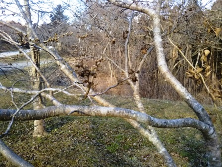 牧場内にあるマンサクの木ですが、昨年、一昨年はこの頃から花を咲かせていましたが、