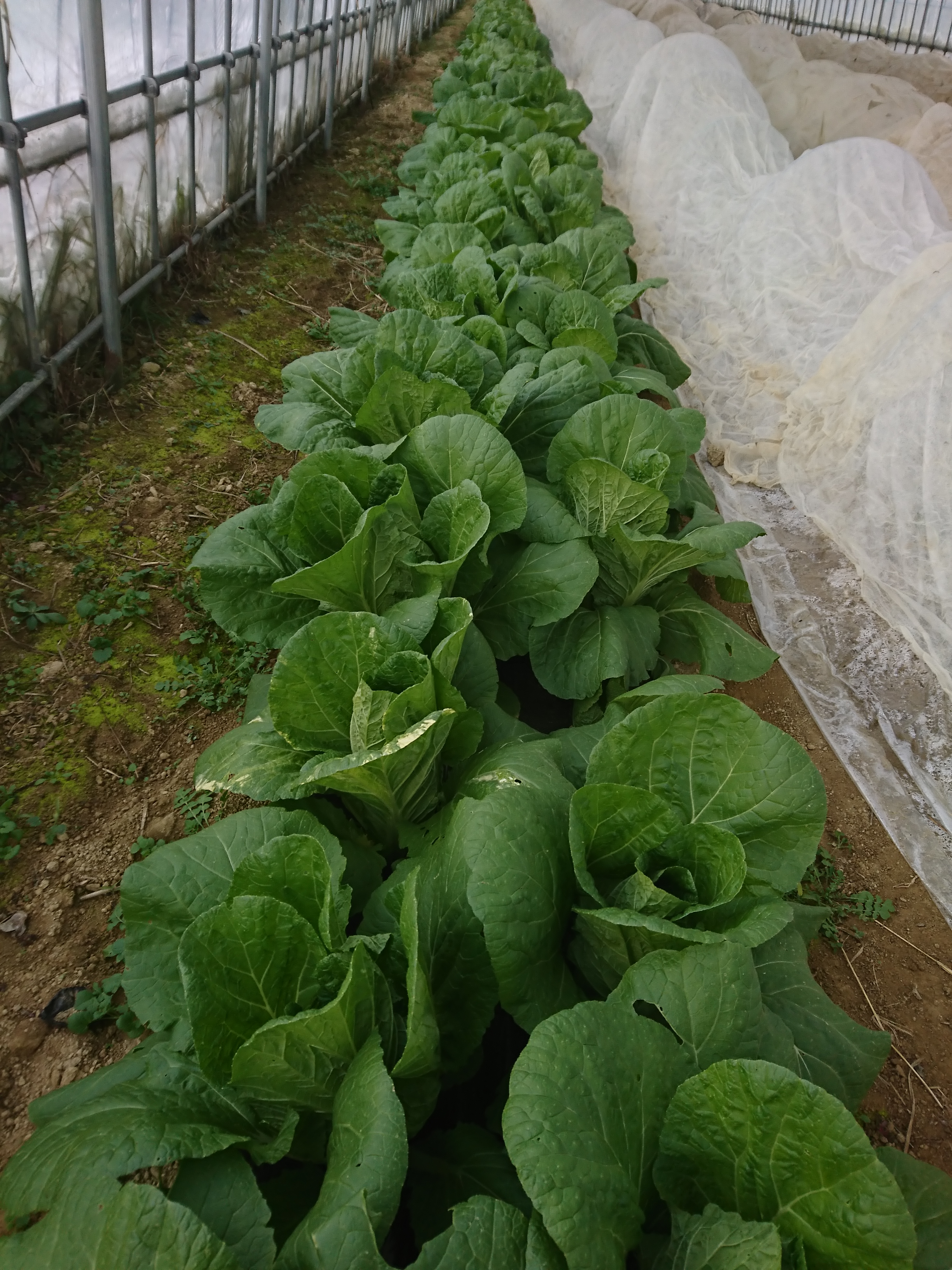 現在結球を初めて収穫時期を迎えている白菜もあります。