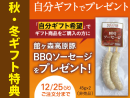 ギフト箱に入れない代わりに「BBQソーセージ(45g×2)」をプレゼントする特典もご用意しています。