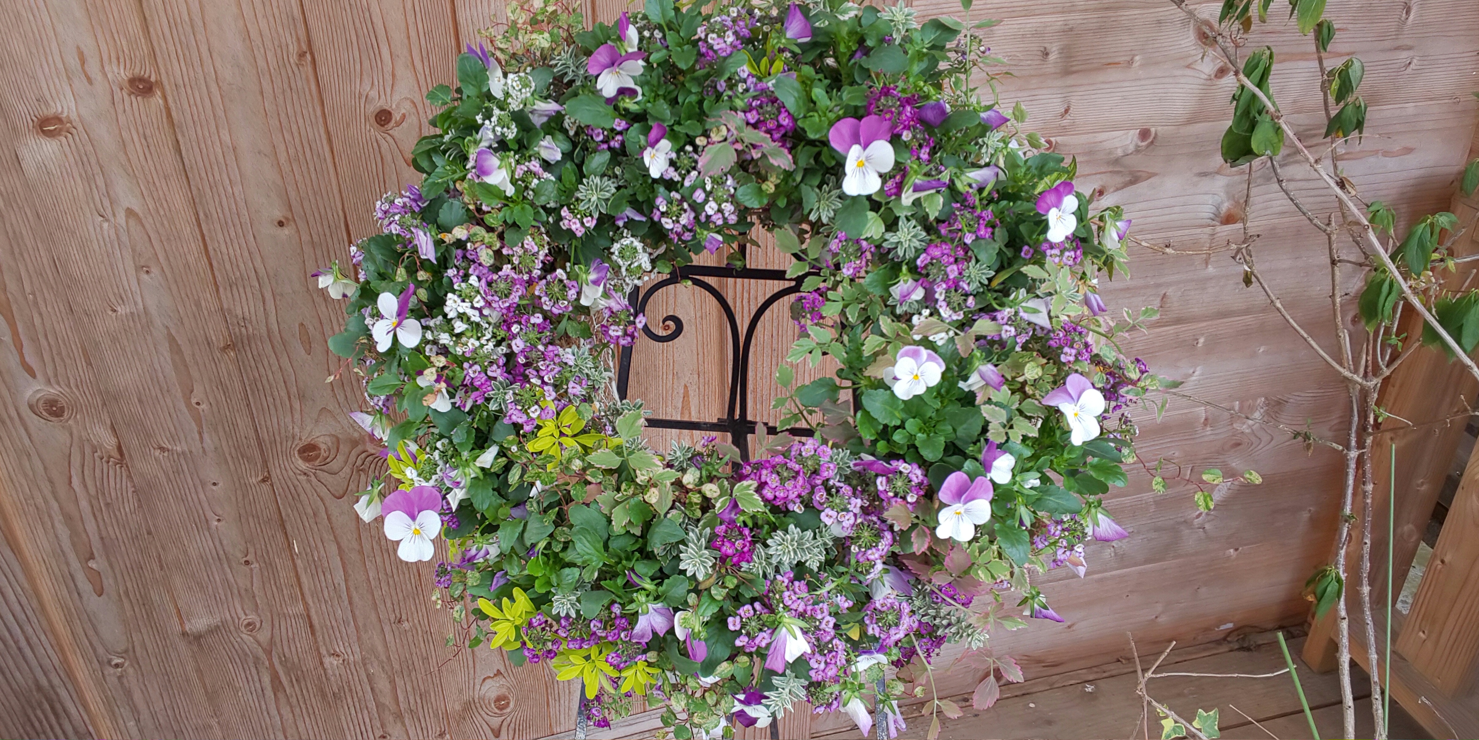 スイートアリッサムとビオラを使っで フワフワでかわいいリース作品