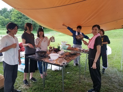 ↑スノーピークでのキャンプでの1コマ。キャンプを皆で楽しんでいます。