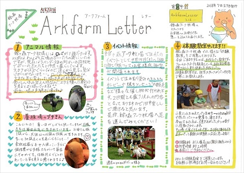 館ヶ森アーク牧場では、牧場へお越しいただいたお客様へ、スタッフ手作りのお便りをお渡ししています。