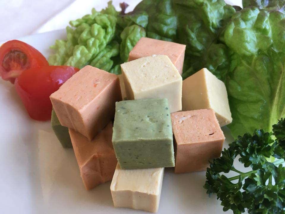 3種類の野菜(かぼちゃ、ほうれん草、パプリカ)を練りこんだ