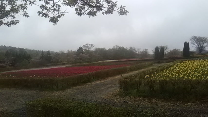 牧場名物のチューリップは咲き始まったばかり