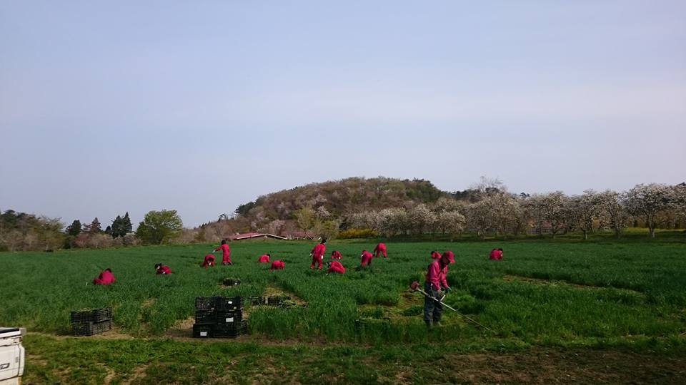 実際の農作業風景です。牧場の皆さんが雑草狩りに精を出されています。