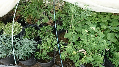 銅葉が美しいので、ガーデン内の大鉢のテラ
