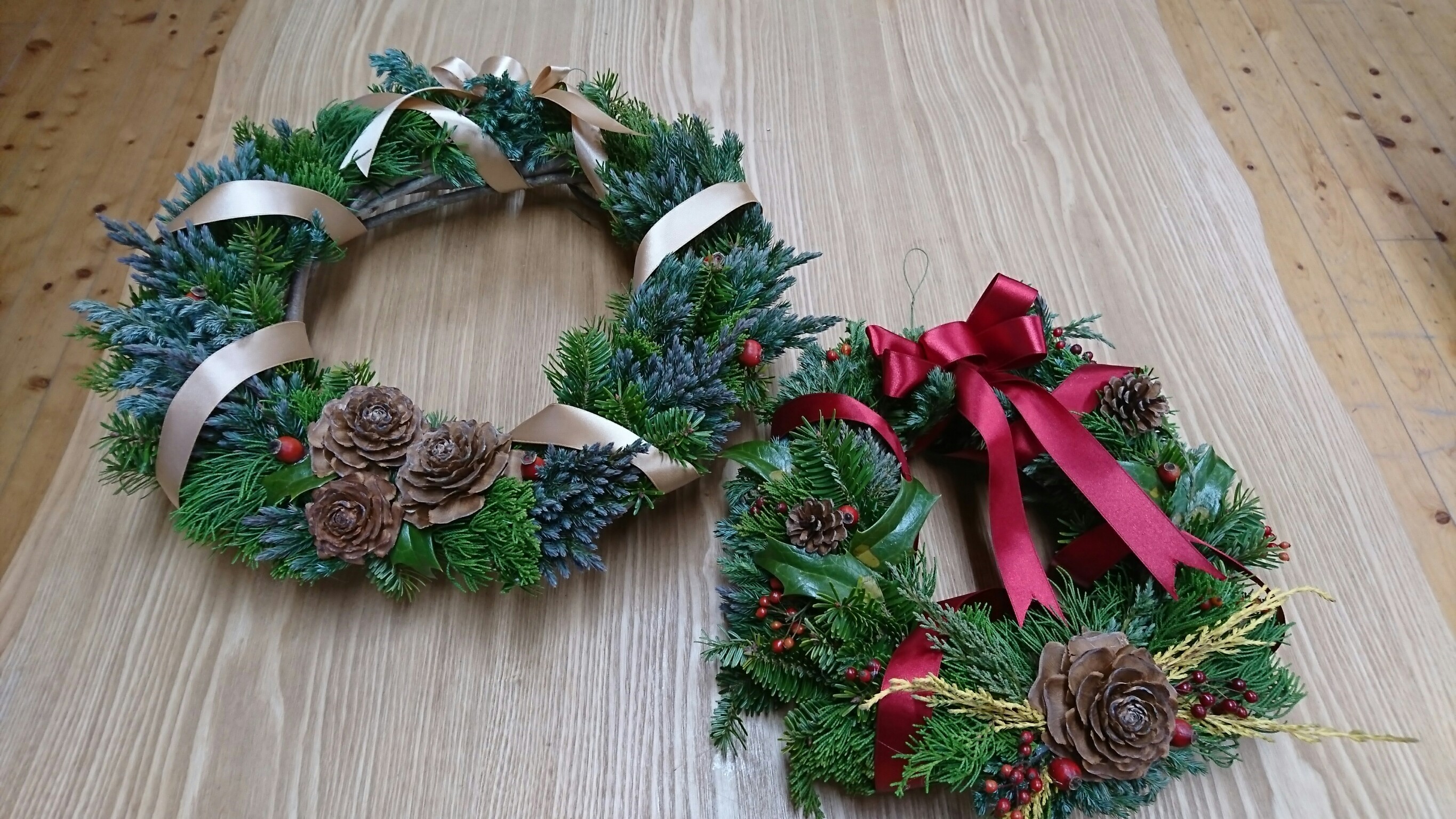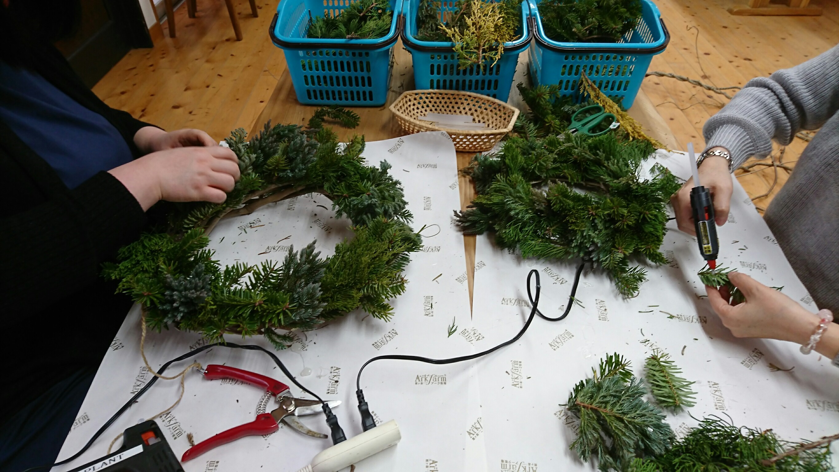 アーク牧場では 今年も クリスマスリース作り教室が行われました。アーク牧場で 育てられてる いろんなコニファーやもみの木などの 生木をベースに 松ぼっくり ローズヒップなどの木の実を使って 素敵な クリスマスリースを 作りました。