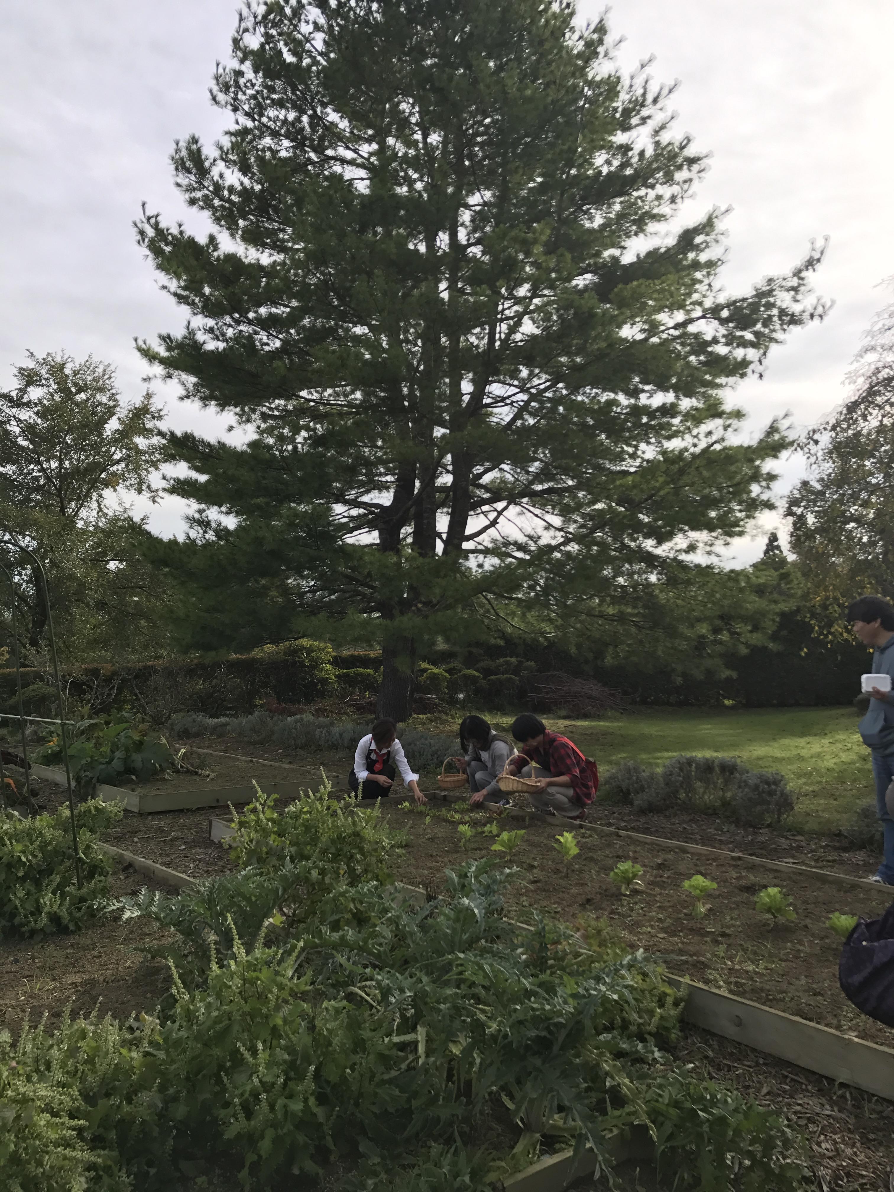 本日は、今年度より新たに加えたキッチンガーデン「ポタジェ」での朝露に濡れる野菜やハーブの摘みと