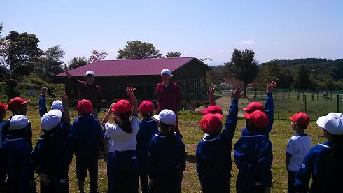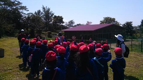 牧場は小学校の校外学習で多くの子供たちで賑わっています。
