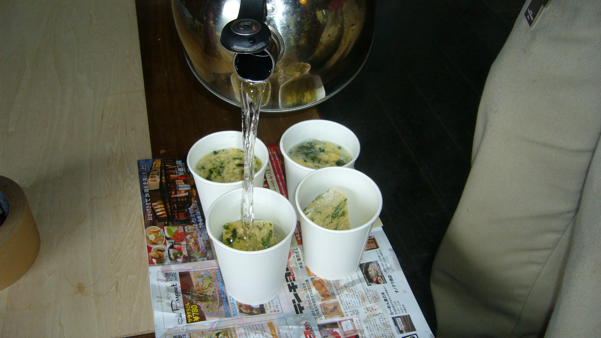 最近、昼食で「昔たまごスープ」を同僚と飲んでおり