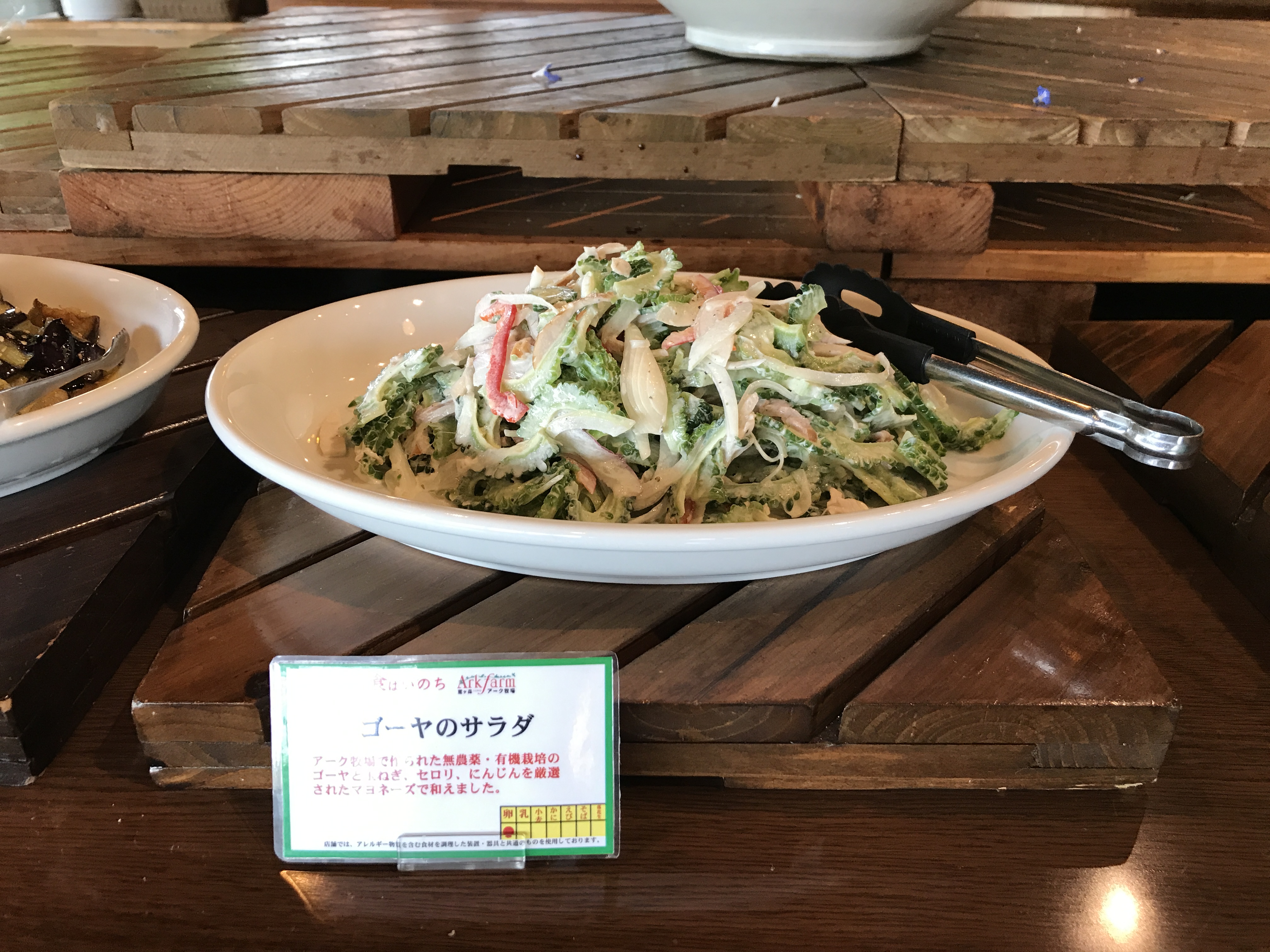 ゴーヤは、牧場産のセロリ・ニンジン・玉葱と一緒にオリジナルのマヨネースで和えて。