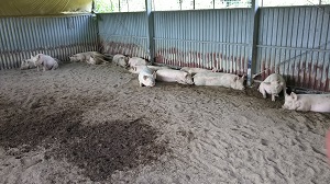 通常、豚は豚舎の中で生活しているのですが、