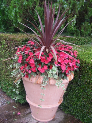 「夏の暑さに負けない花」ということなので日差しガンガンのテラコッタに採用♪