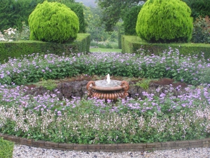 噴水周りもお気に入りの配色、うすいピンクとブルーで涼しげに。