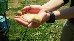 このヒナは、館ヶ森アーク牧場のニワトリ達が産んだ卵から孵ったヒナたち。