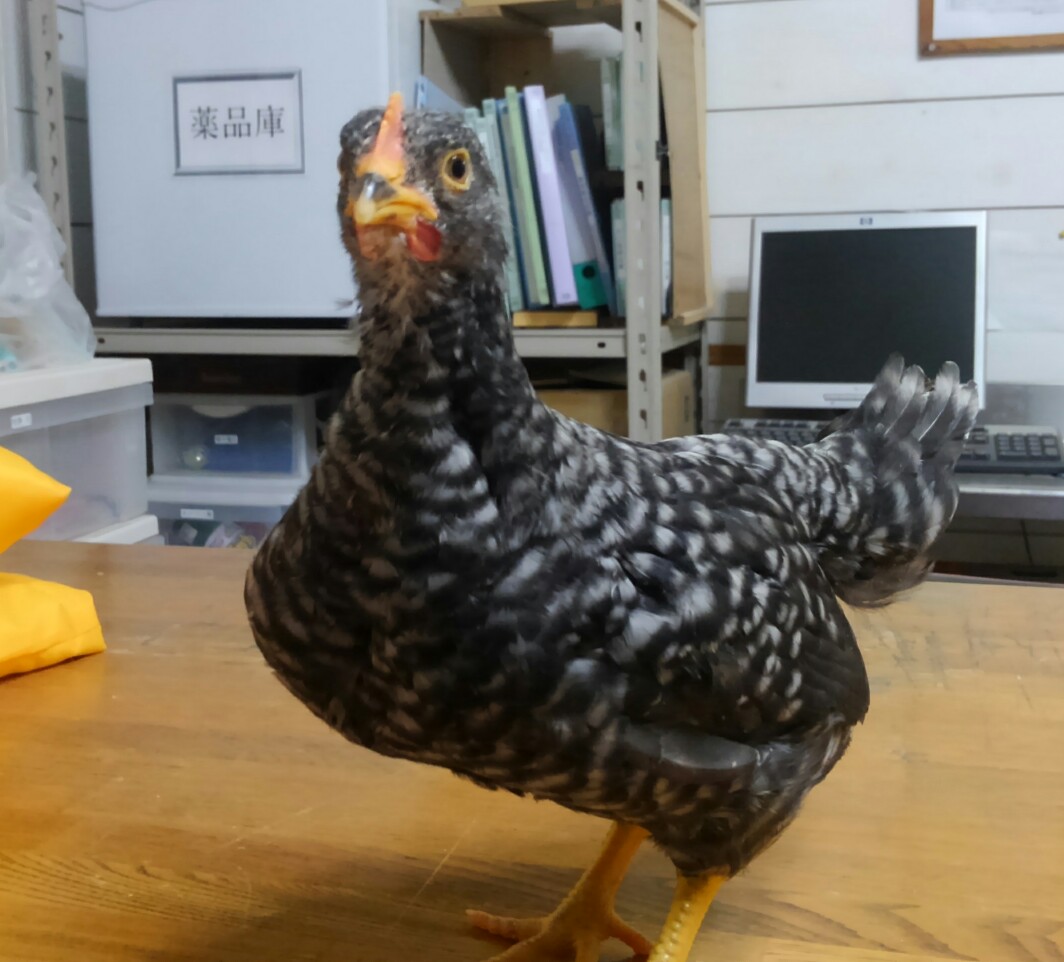養鶏部の事務所では、有精卵である「昔たまご」を温めて孵化させたヒヨコを飼育中です。