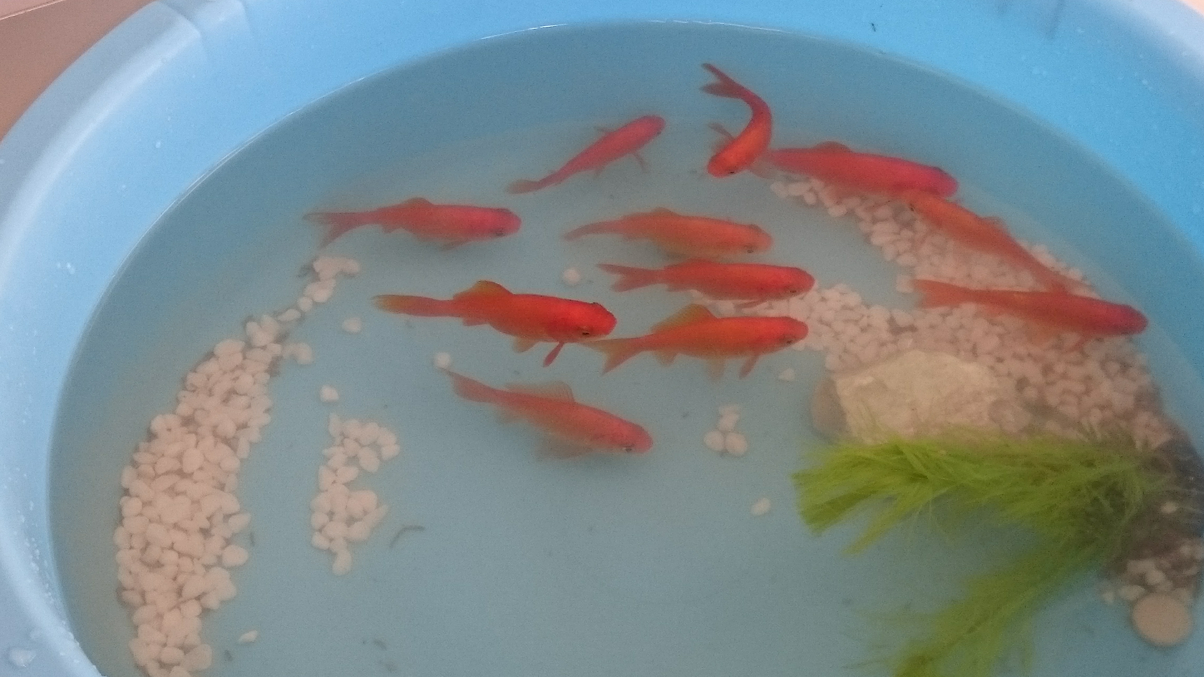 ファームマーケットの前に泉水があり、11匹の金魚が住んでいます。