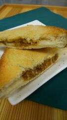食パンの横から切り込みを入れ、カレーを詰めてこんがり焼いたら出来上がりです。