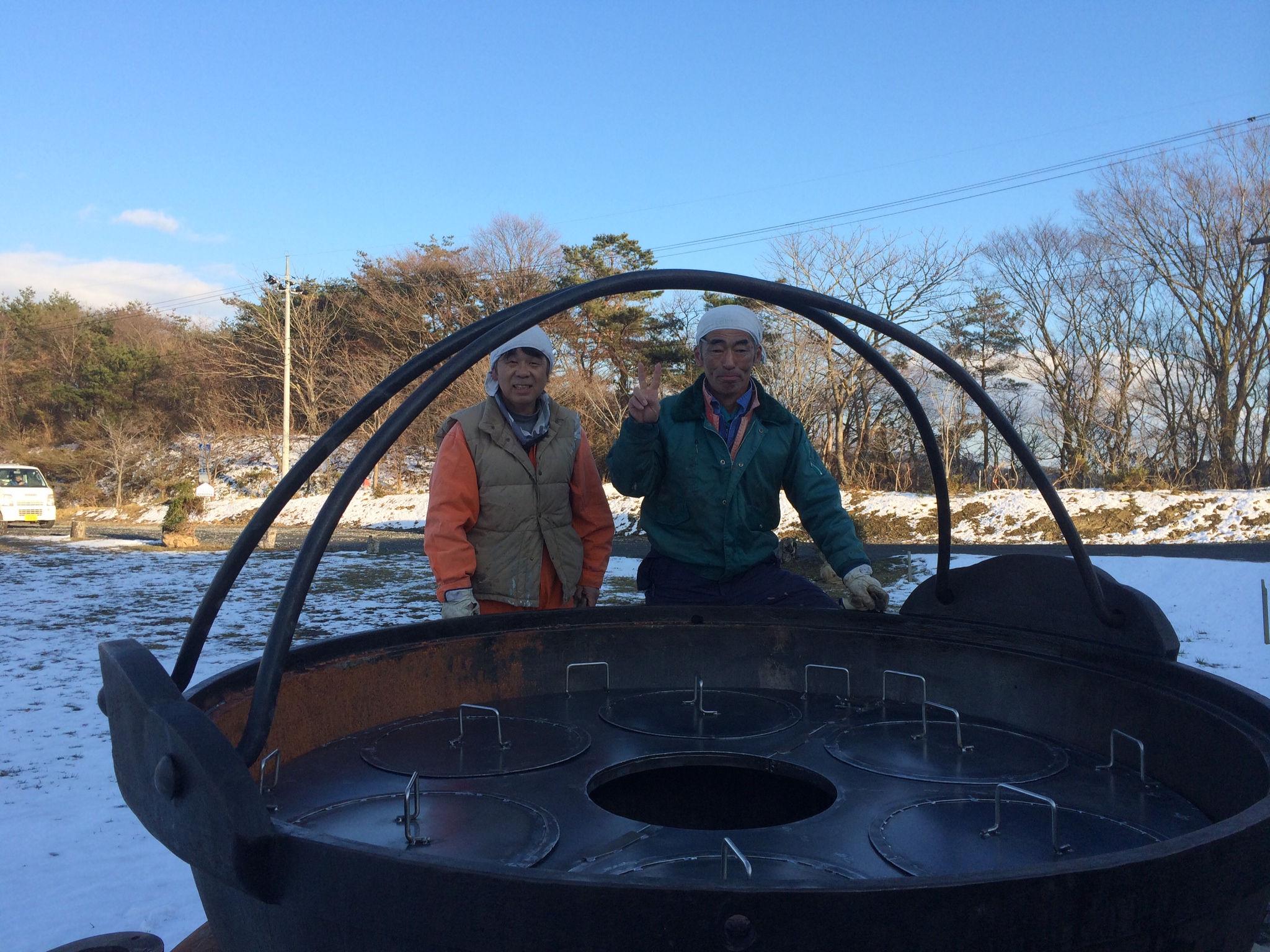 営繕班の千葉さんと石川さんです♪大鍋で当社自慢の豚まんをみんなで豪快に吹かし上げます! ご来場お待ちしております♪